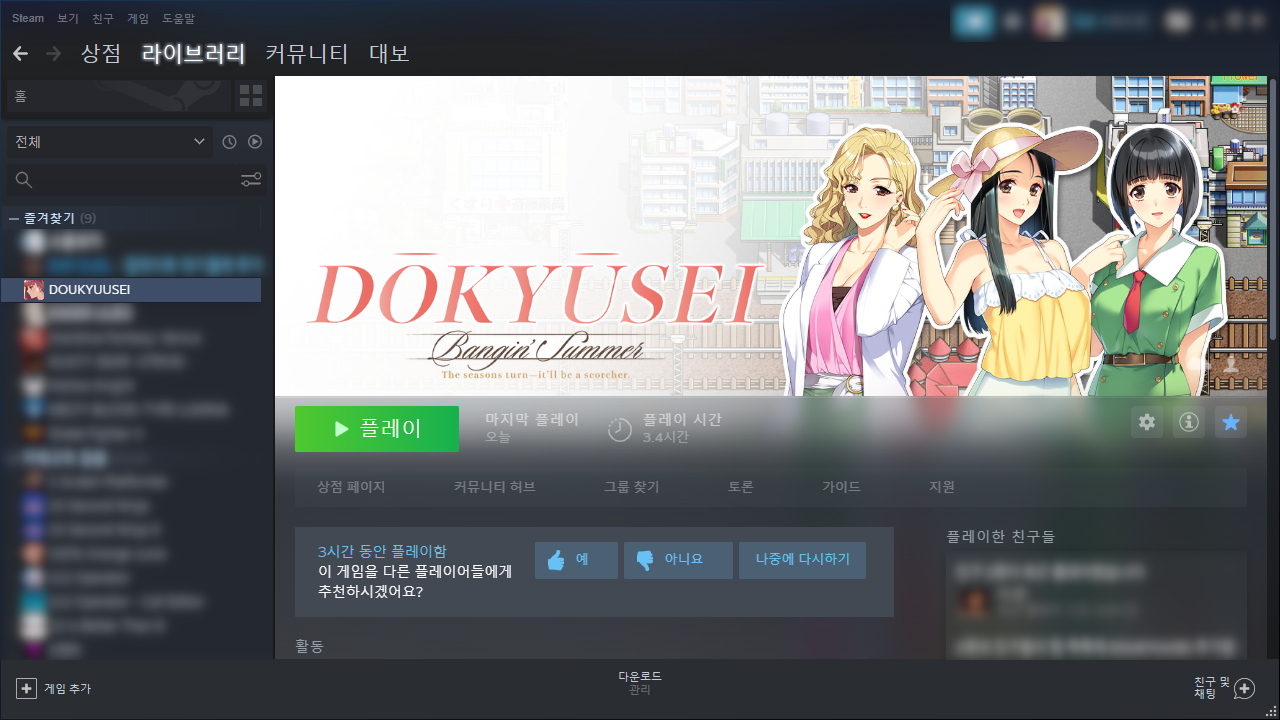 4. 스팀에서 동급생을 실행하여 한글화가 된 동급생 리메이크를 플레이 합니다.